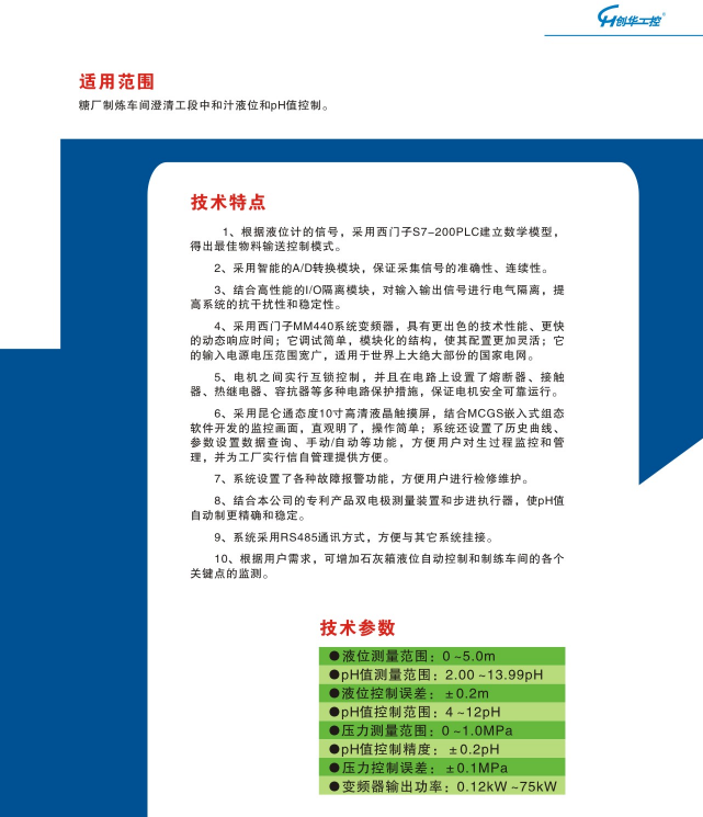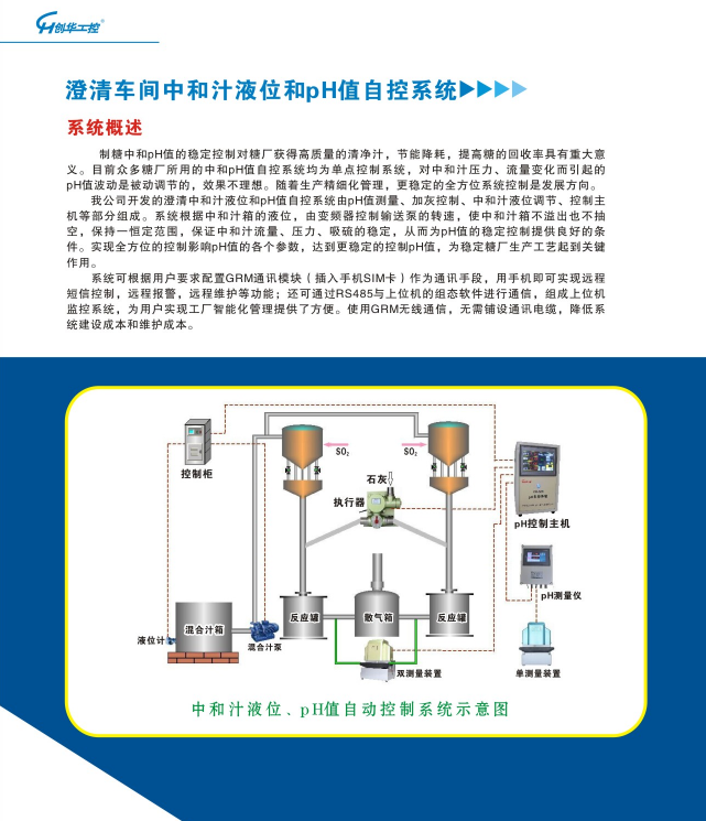 澄清車(chē)間中和汁液位和pH值自控系統(tǒng)